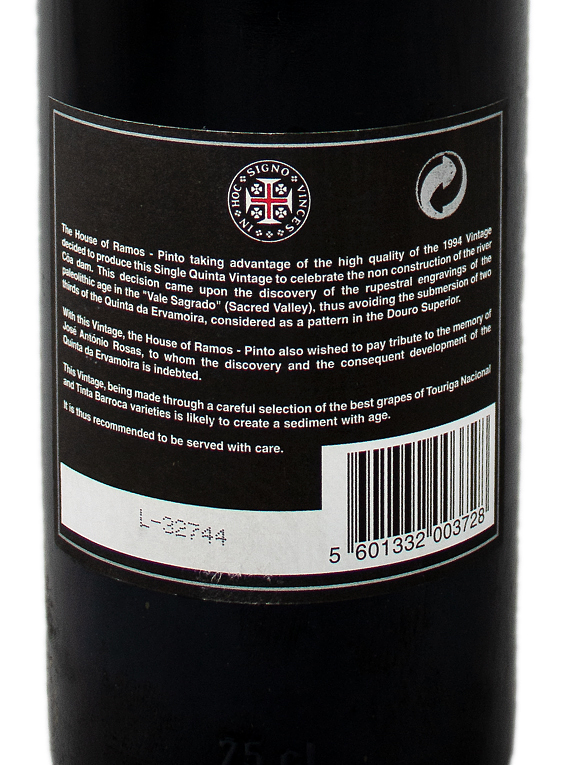 With this Vintage, Ramos Pinto's house wishes to pay tribute to the memory of José António Rosas to whom the discovery and consequent development of Quinta da Ervamoira is undoubted. On the nose reveals an elegant bouquet, featuring excellent aromatic potential. The aromas are predominantly floral, with some menthol and spice touches. On the palate shows a remarkable harmony. The soft and soft tannins perfectly illustrate the degree of maturation of Quinta de Ervamoira grapes. Long aftertaste with persistent red fruit flavor.